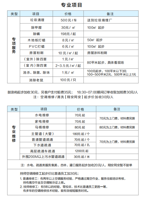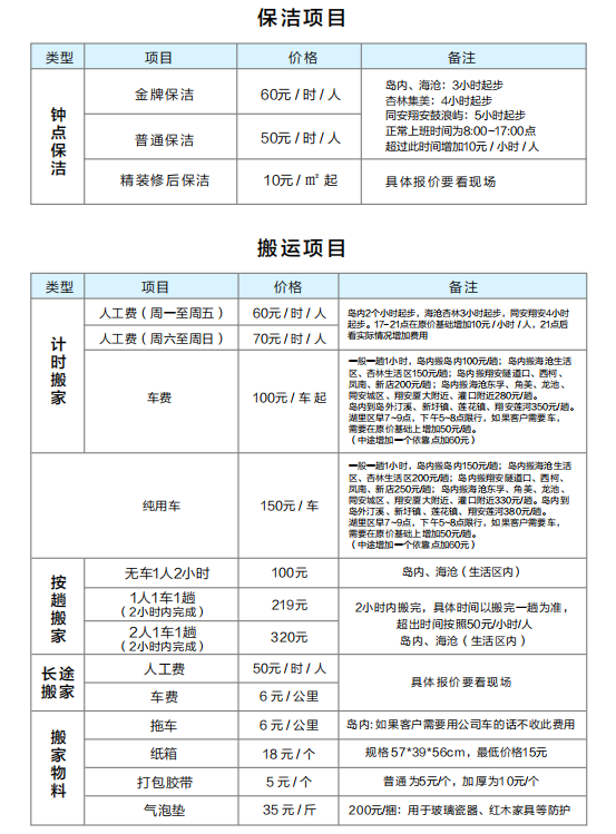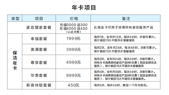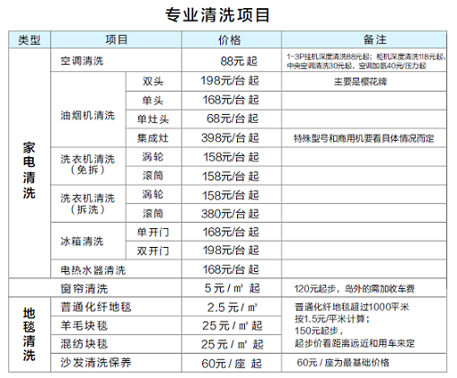 孔雀河家政服務(wù)參考價(jià)格表